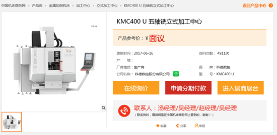 筆者通過瀏覽中國機床商務網的網頁觀察到,在網站的產品詳細頁,已上線了“申請分期付款”的按鈕。網友在瀏覽到想要購買的機床產品時,可以點擊“申請分期付款”的按鈕,進入到平安租賃的產品介紹頁面,進而了解分期流程,申請設備融資。