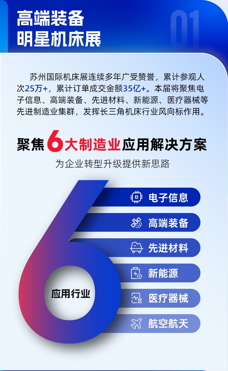 2024年第六屆蘇州國際機(jī)床展將圍繞四大王牌產(chǎn)業(yè),聚焦電子信息、高端裝備、先進(jìn)材料、新能源、醫(yī)療器械等先進(jìn)制造業(yè)集群,發(fā)揮長三角機(jī)床行業(yè)風(fēng)向標(biāo)作用,全面實(shí)施工業(yè)智造強(qiáng)基提質(zhì)行動。
