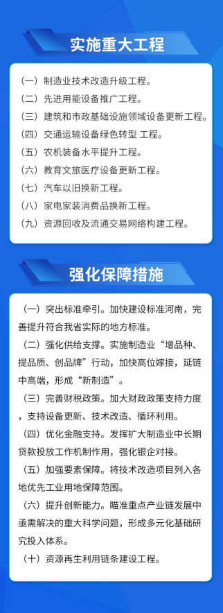 近日,河南省政府重磅發布《河南省推動大規模設備更新和消費品以舊換新實施方案》。其總體目標是:到2027年,全省多個領域的設備投資規模要比2023年增長25%以上。