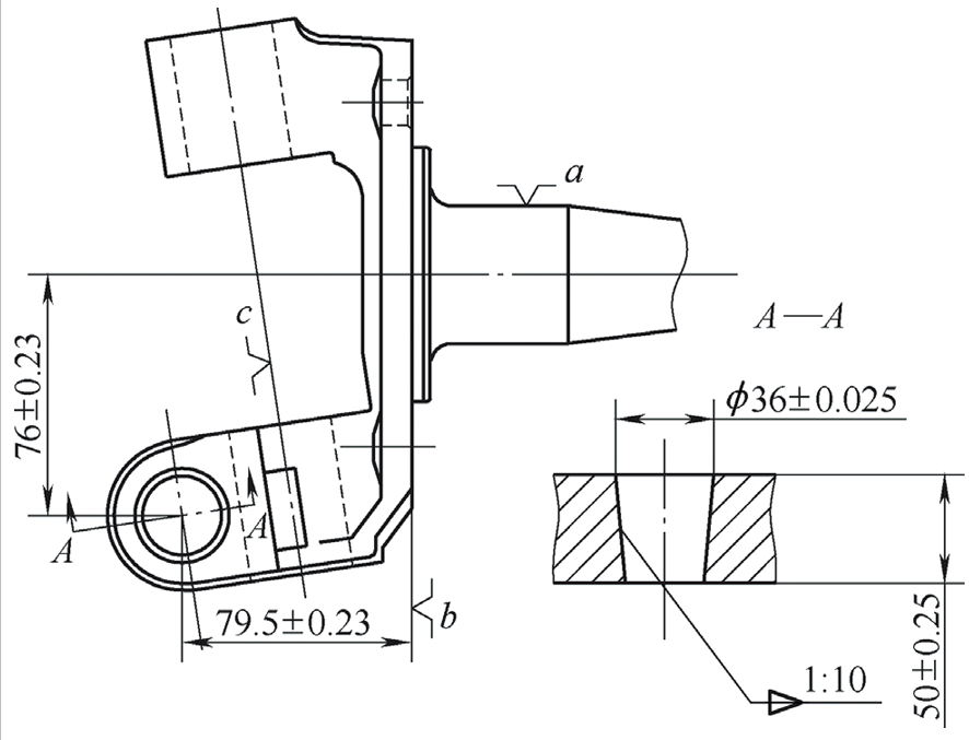(1)前工序應當保證c 處定位基準孔的加工精度,確保定位心軸。