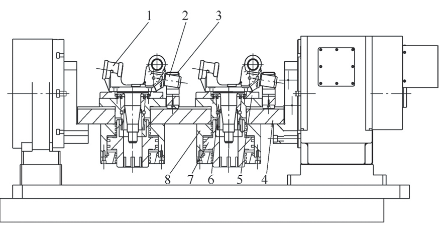 1. 工件 2.插拔式定位心軸 3.U形定位卡槽 4.橋板 5.定位盤 6.鎖緊彈套 7.液壓拉缸活塞 8.液壓拉缸缸體