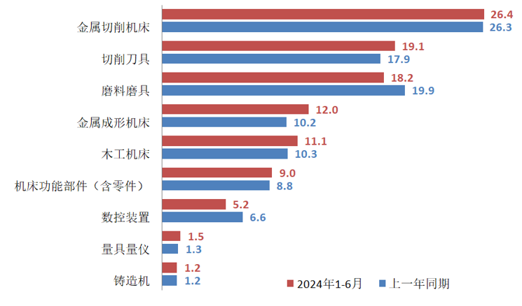 表1 2024年1-6月機床工具全行業及主要分行業的營業收入情況