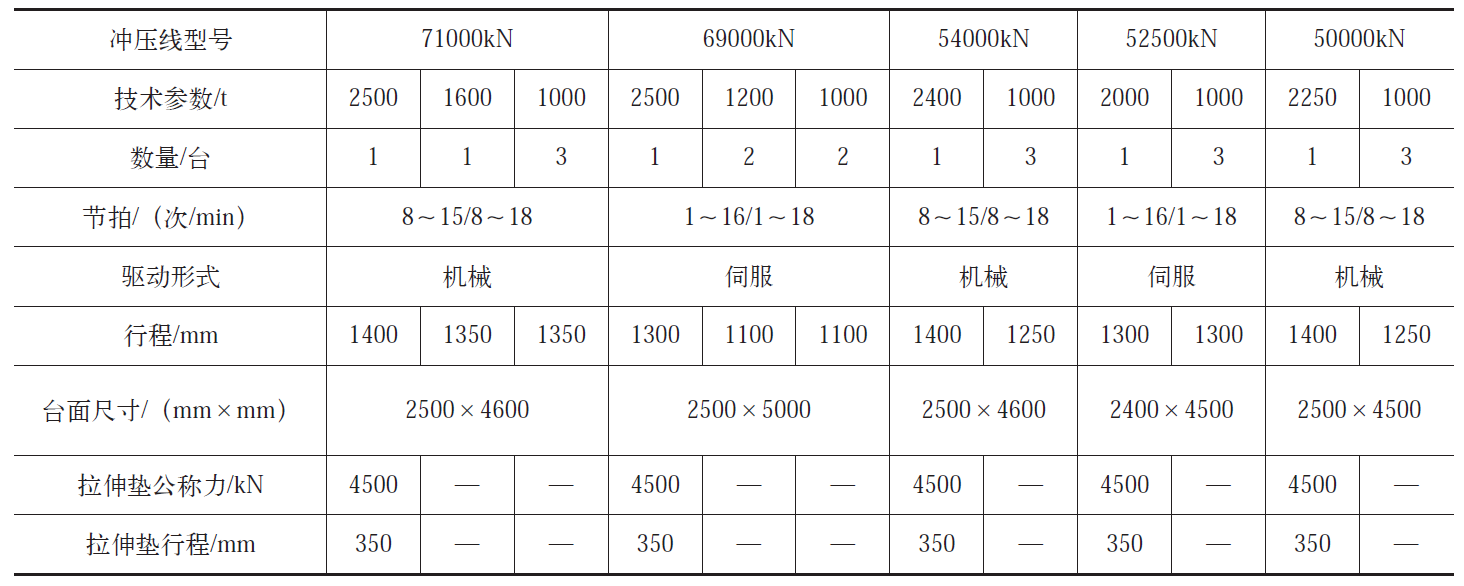 表1 常用的單、雙臂沖壓線參數