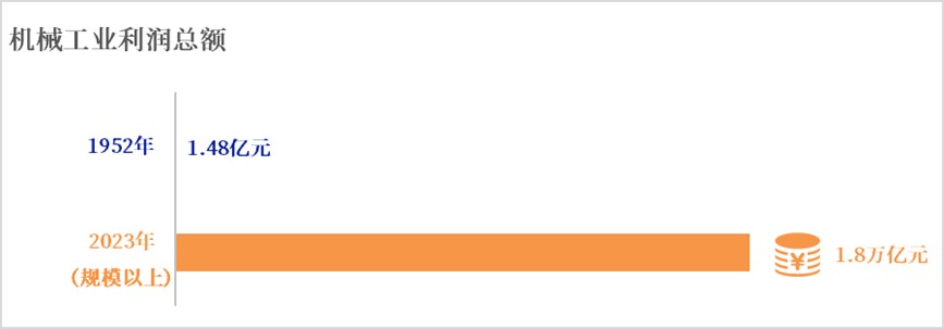 機械工業年度主營業務收入由1990年的3379.2億元,增至2023年實現營業收入29.8萬億元,占全國工業的22.3%。年度實現利潤總額,由1952年機械系統企業的1.48億元,增至2023年規模以上企業合計的1.8萬億元,占全國工業的22.8%。