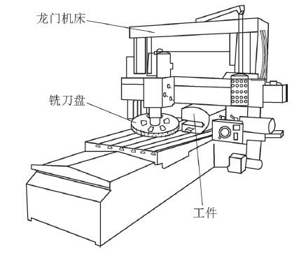 用戶機(jī)床為大型龍門銑床,工件沿長度方向安裝在龍門銑床工作臺上,如圖10所示。將所設(shè)計的帶輪轂型減重孔的銑刀盤,通過專用銑刀桿安裝在龍門銑床主軸上,用戶材料為HT250,毛坯為鑄造件。使用硬質(zhì)合金刀片,按YG8選用,采用干式銑削。主軸轉(zhuǎn)速為60r/min,龍門銑床工作臺進(jìn)給速度為200mm/min,所加工工件的槽深為360mm。實際切削效果滿足用戶要求,刀盤質(zhì)量減輕后既方便了安裝使用,也提高了生產(chǎn)效率。
