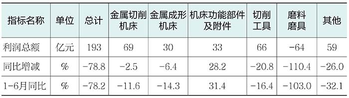 表2 2024年1-9月機床工具全行業(yè)及主要分行業(yè)利潤總額情況
