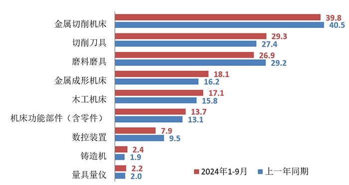表1 2024年1-9月機床工具全行業(yè)及主要分行業(yè)的營業(yè)收入情況