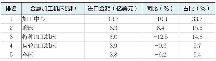 (1)進(jìn)口金額排前五位的金屬加工機床品種