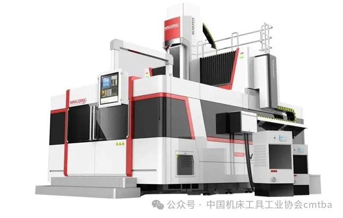 代表展品如南京寧慶數控機床制造有限公司的橫梁移動式五軸數控龍門加工中心,是一款橫梁移動式高速機,工作臺不移動,高速高剛性立式龍門結構床身,結合自主研制的高速高精度雙擺頭,并配套工件質量原位檢測系統和五軸高效加工工藝軟件,實現大尺寸零件的高效銑削加工。特別適合大型鈦合金結構件、運載火箭貯箱壁板等零部件加工。