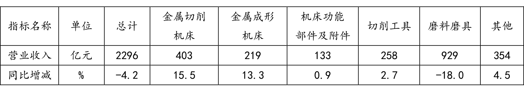 機(jī)床工具行業(yè)及主要分行業(yè)的營(yíng)業(yè)收入情況,詳見表1。