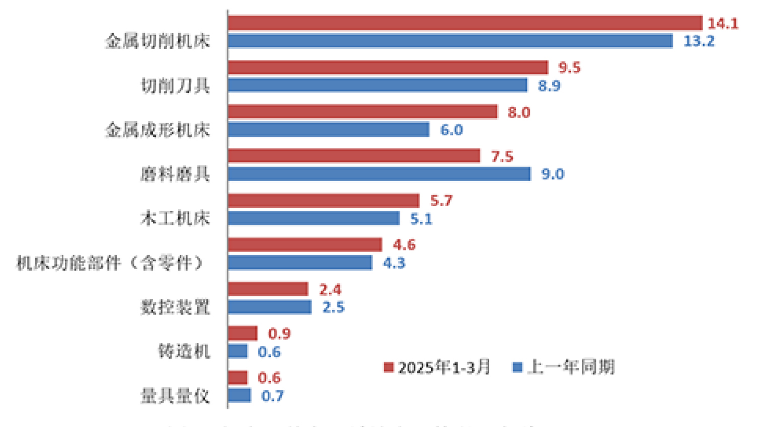 表1 2025年1-3月機(jī)床工具行業(yè)及主要分行業(yè)的營(yíng)業(yè)收入情況