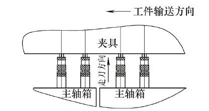 從加工過程來分析, 加工中心機床加工凸輪軸孔,是單軸加工,刀具從第1檔凸輪軸孔前端口開始,結(jié)束在凸輪軸孔末端出口,刀具工進全程410mm以上,而且是以工進速度進給。刀具退出排氣凸輪軸孔,再加工進氣凸輪軸孔,加工過程也是如此復(fù)雜,本工序節(jié)拍比較長,效率低,限制了整條缸蓋生產(chǎn)線生產(chǎn)節(jié)拍的提高。