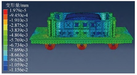 圖9 頂蓋模具支撐到測量平板小車上的變形結果